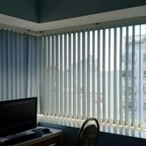 Mành sáo lá dọc với thiết kế phong phú và mượt mà rất phù hợp cho không gian văn phòng. Màu sắc trung tính của rèm là sự kết hợp lý tưởng với các yếu tố tự nhiên, mang lại không gian thoáng đãng và ánh sáng dễ chịu. Bạn có thể dễ dàng điều chỉnh ánh sáng vào phòng, giúp không gian văn phòng trở nên ấm cúng và thoải mái hơn.