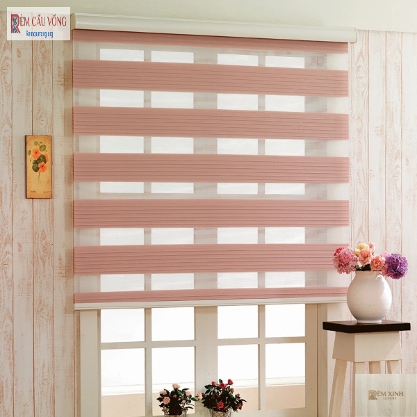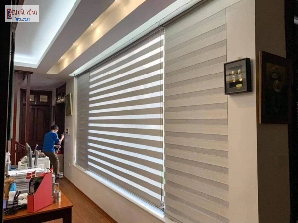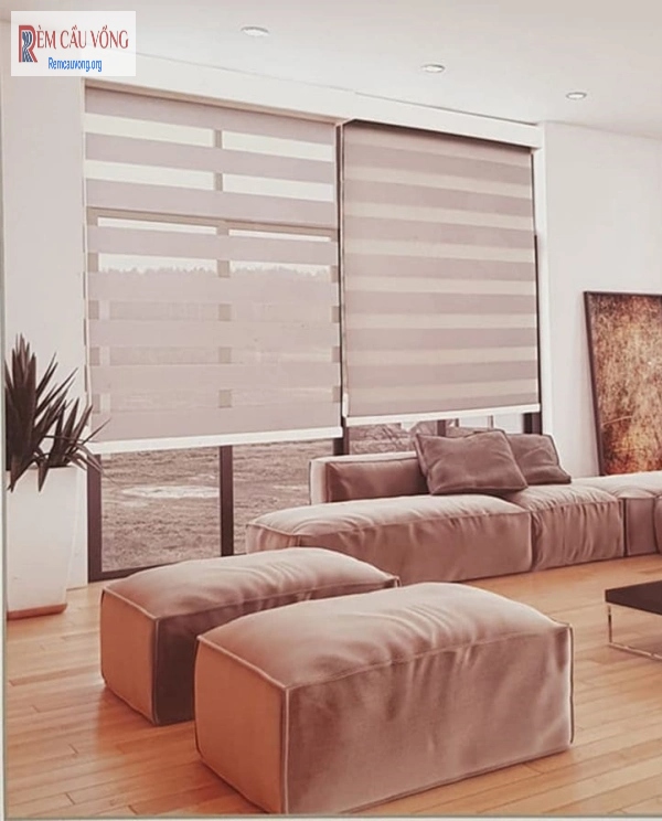 Rèm cầu vồng Blinds, hay còn gọi là rèm cuốn cầu vồng, được cấu tạo từ hai lớp vải đan xen nhau. Một lớp là vải lưới trong suốt, và lớp còn lại là vải đặc kín. Nhờ thiết kế này, rèm cầu vồng cho phép người dùng dễ dàng điều chỉnh mức độ ánh sáng vào phòng bằng cách kéo dây hoặc điều khiển từ xa để các lớp vải đan xen thay đổi vị trí. Khi hai lớp vải đặc trùng khớp, rèm sẽ che kín hoàn toàn, ngăn chặn ánh sáng từ bên ngoài. Ngược lại, khi các lớp vải lưới trùng nhau, ánh sáng sẽ được cho phép đi qua, tạo nên một không gian thoáng đãng và sáng sủa.