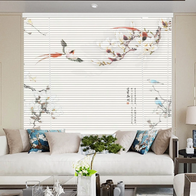 Với khả năng in tranh nghệ thuật, rèm nhôm họa tiết trở thành một tác phẩm trang trí độc đáo cho căn phòng. Tùy theo gu thẩm mỹ, người dùng có thể lựa chọn hình ảnh về thiên nhiên, phong cảnh, hoa lá, hoặc biểu tượng văn hóa, giúp không gian sống phản ánh đúng cá tính và sở thích.
