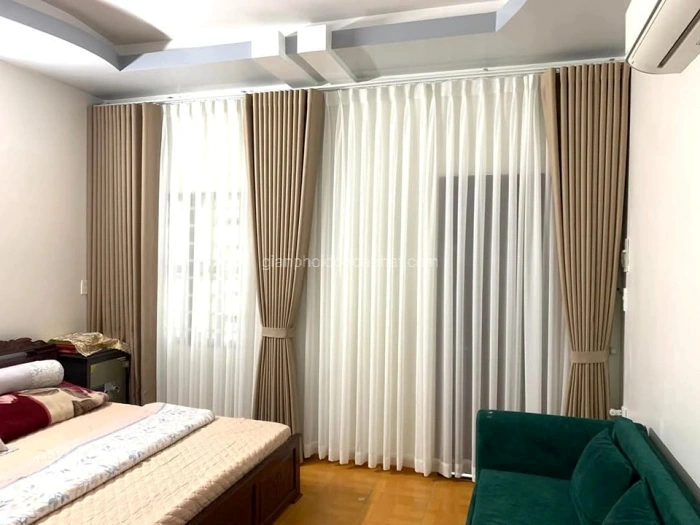- Rèm vải hai lớp: Loại rèm kết hợp giữa lớp vải chính và lớp voan mỏng, tạo sự mềm mại, sang trọng và khả năng che chắn tốt hơn. Lớp voan giúp lấy sáng, tạo không gian thông thoáng.